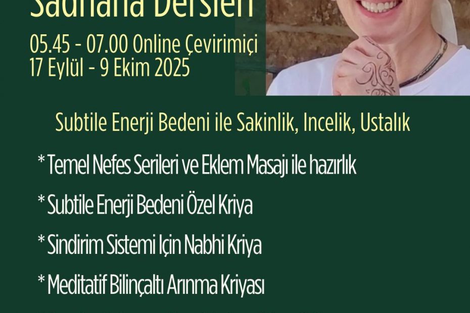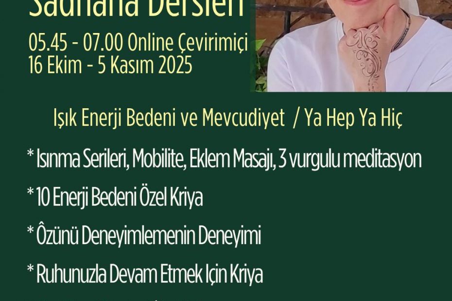 Sabah Pratiği Sadhana Dersi Kundalini Yoga ve Meditasyon 16 Ekim – 5 Kasım 2025 05.45 – 07.00 am Işık Enerji Bedeni ve 11… Daha fazlasını oku »16 Ekim – 5 Kasım 2025 Sabah Pratiği Sadhana Özel Dersleri